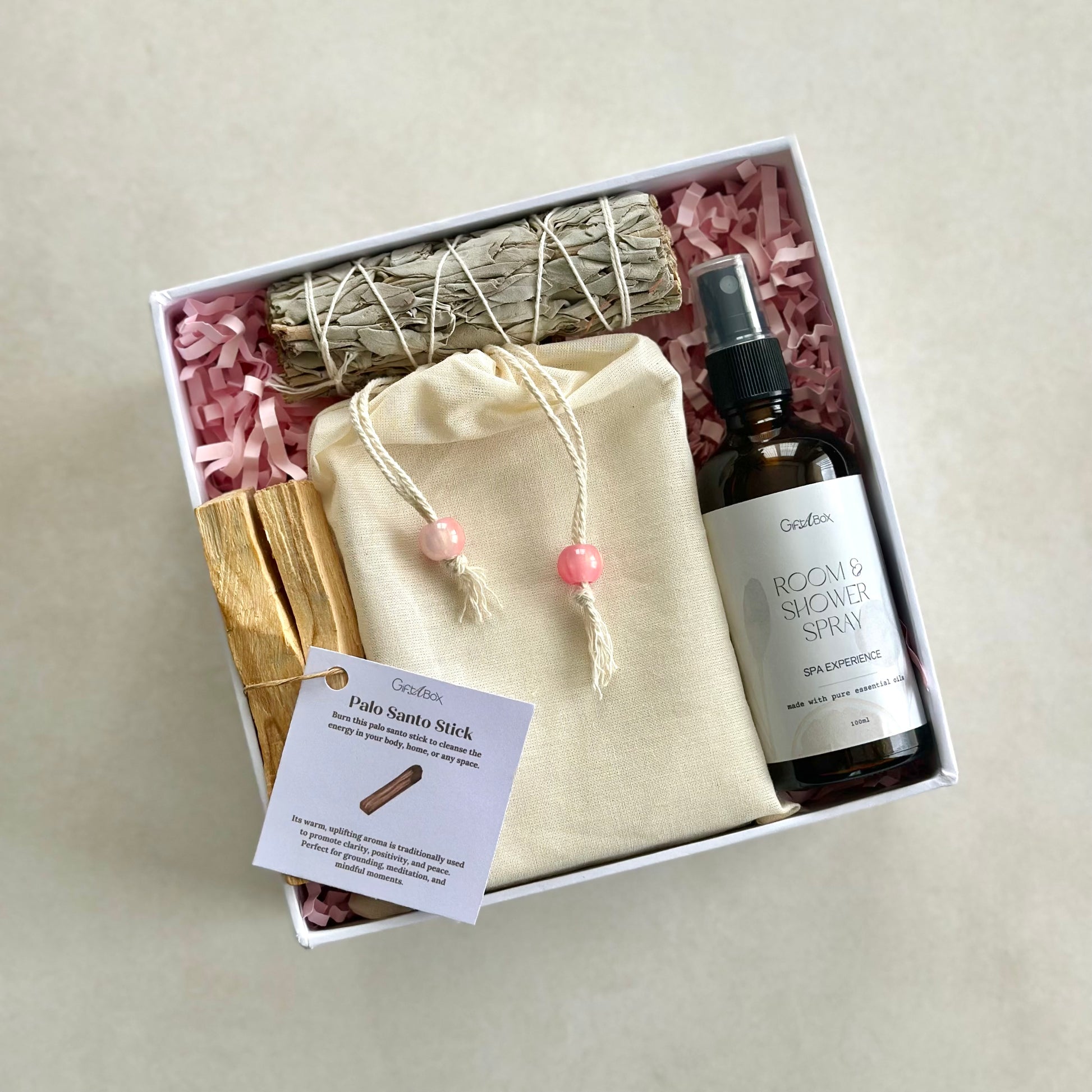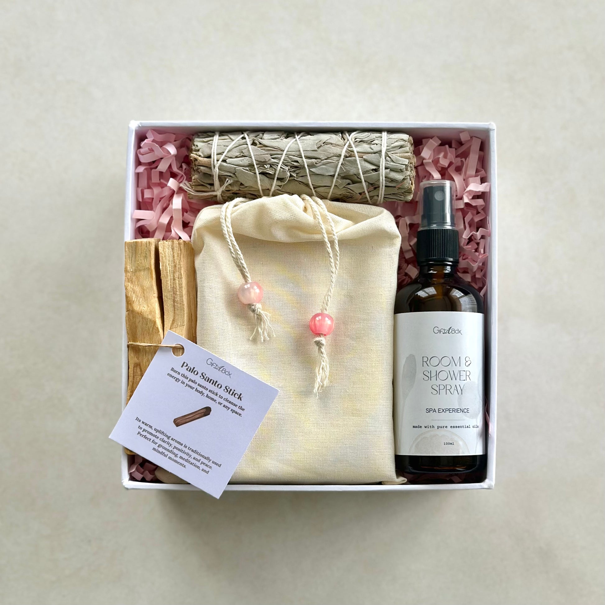 - Set of 2 Palo Santo Sticks – Creates a warm, grounding aroma for moments of reflection.