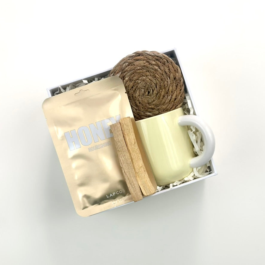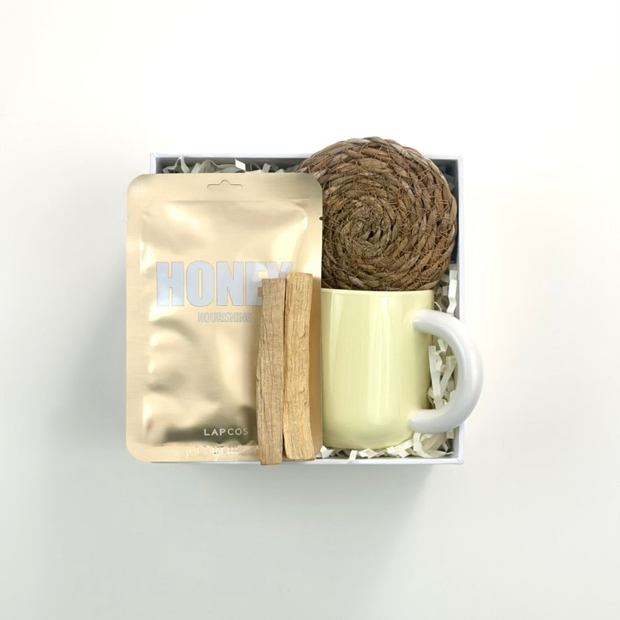 Colorful and cozy, ideal for tea or coffee. - Reusable Premium Mini White Box & Satin Ribbon